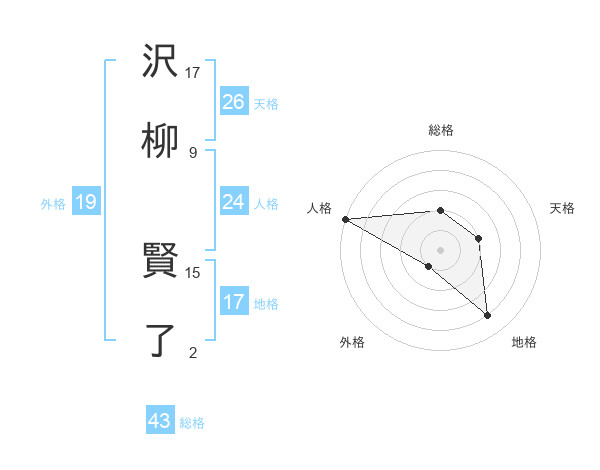 沢柳 賢了さんを姓名の画数から五運を鑑定