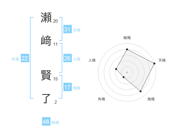 瀬﨑 賢了さんを姓名の画数から五運を鑑定