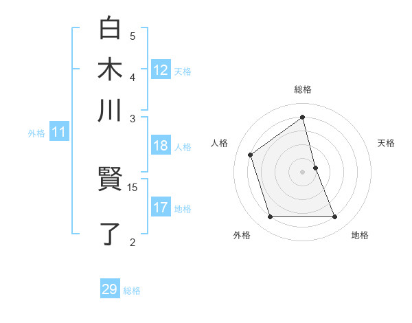 白木川 賢了さんを姓名の画数から五運を鑑定
