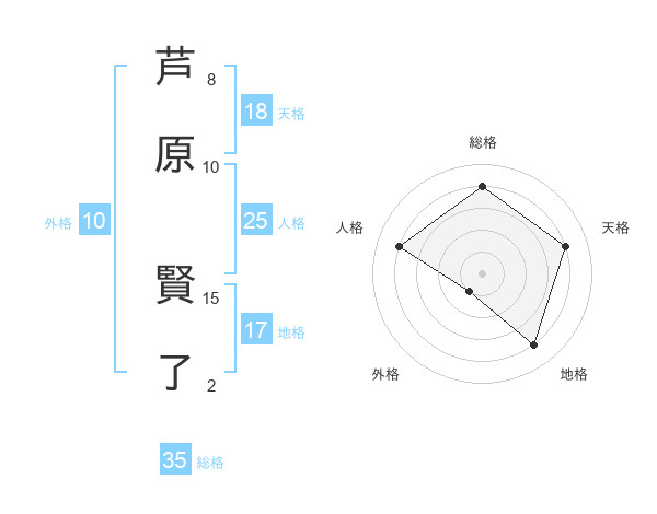 芦原 賢了さんを姓名の画数から五運を鑑定