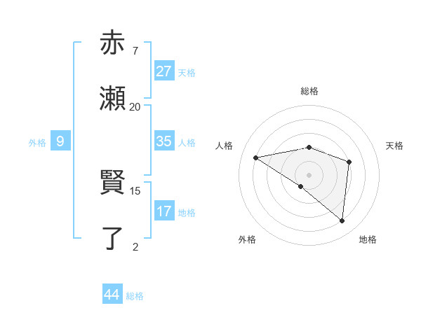 赤瀬 賢了さんの総格は44画の2点!