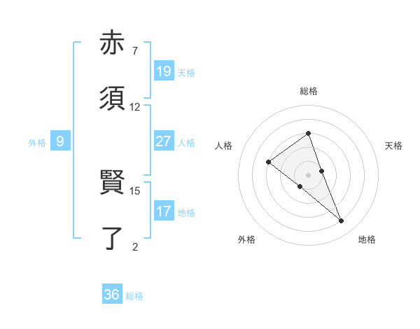 赤須 賢了さんの天格は19画の1点!