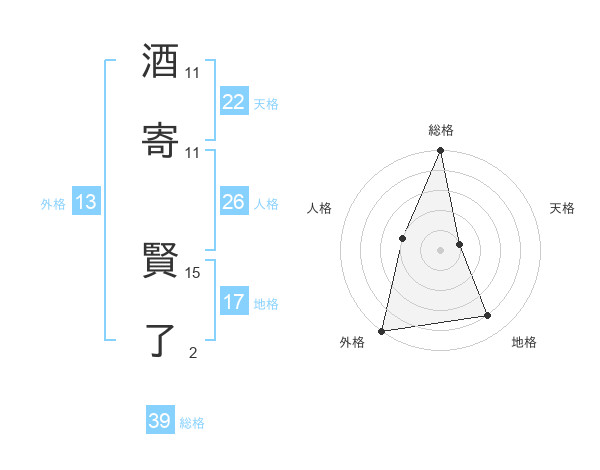 酒寄 賢了さんの外格は13画の5点!