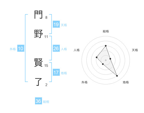門野 賢了さんの天格は19画の1点!