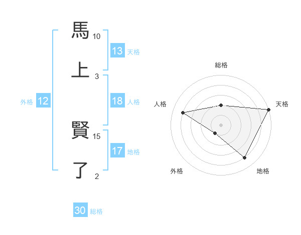 馬上 賢了さんの天格は13画の5点!