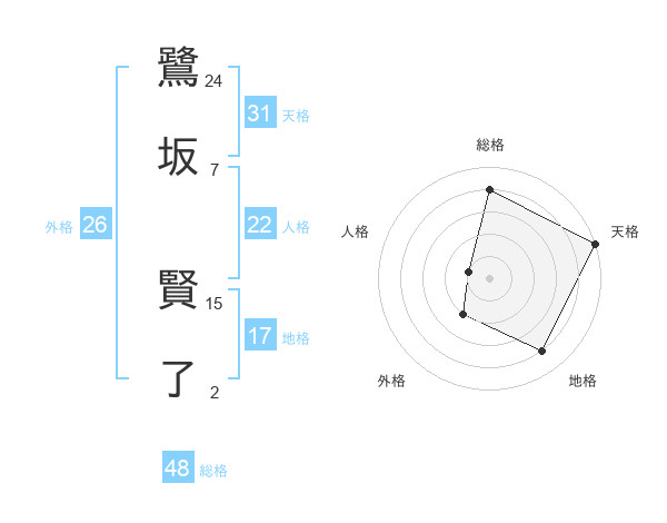 鷺坂 賢了さんの天格は31画の5点!