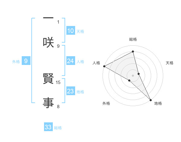 一咲 賢事さんを姓名の画数から五運を鑑定