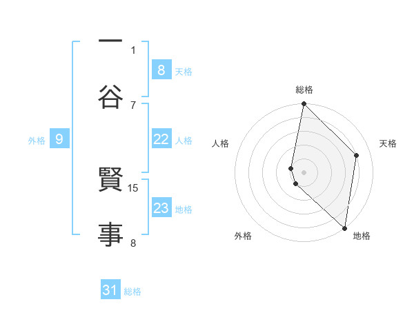 一谷 賢事さんの総格は31画の5点!