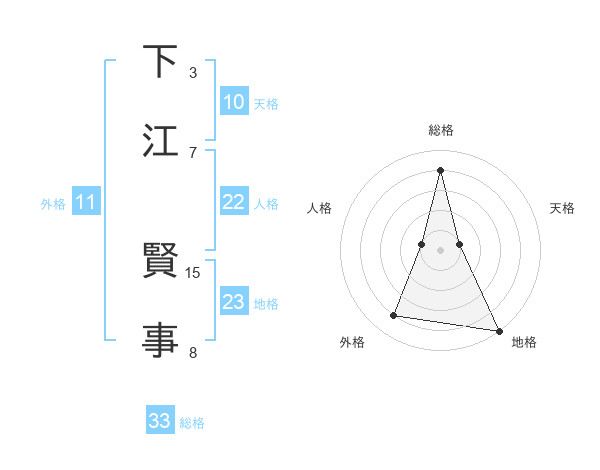 下江 賢事さんの総格は33画の4点!
