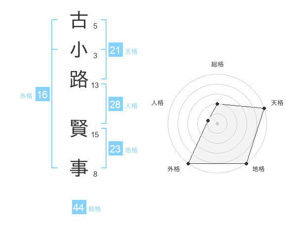 古小路 賢事さんを姓名の画数から五運を鑑定