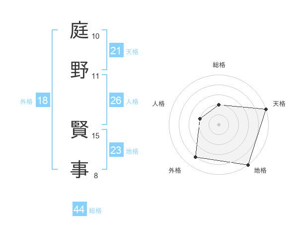 庭野 賢事さんを姓名の画数から五運を鑑定