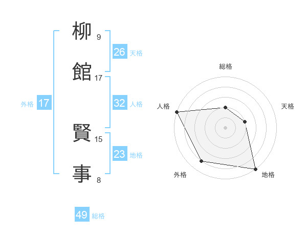 柳館 賢事さんの総格は49画の2点!