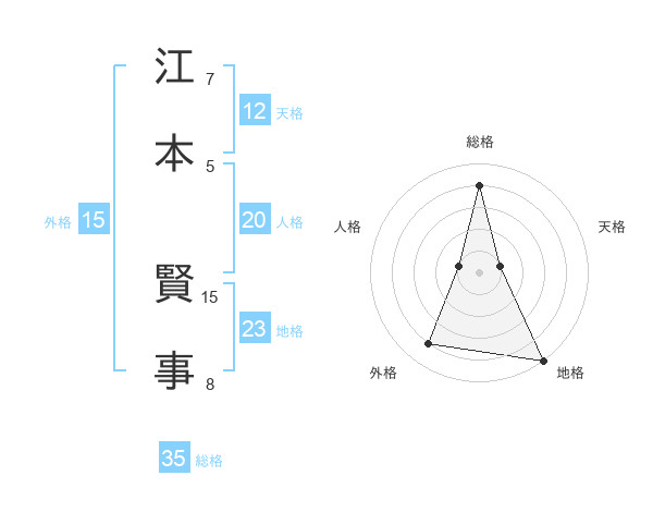 江本 賢事さんの総格は35画の4点!