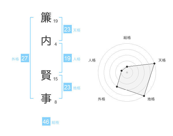 簾内 賢事さんを姓名の画数から五運を鑑定