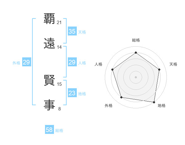 覇遠 賢事さんを姓名の画数から五運を鑑定