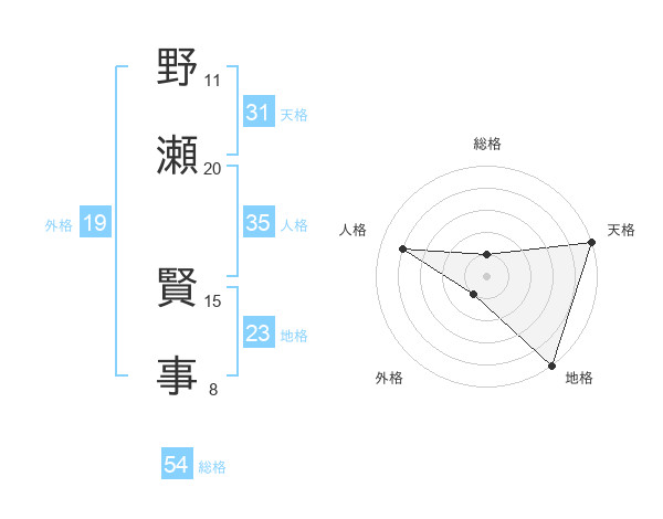 野瀬 賢事さんの天格は31画の5点!
