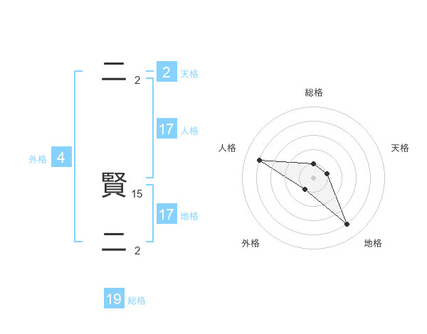 二 賢二さんの地格は17画の4点!