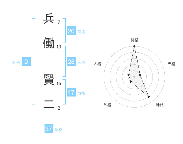 兵働 賢二さんを姓名の画数から五運を鑑定