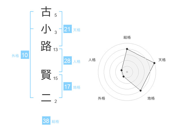 古小路 賢二さんの天格は21画の5点!