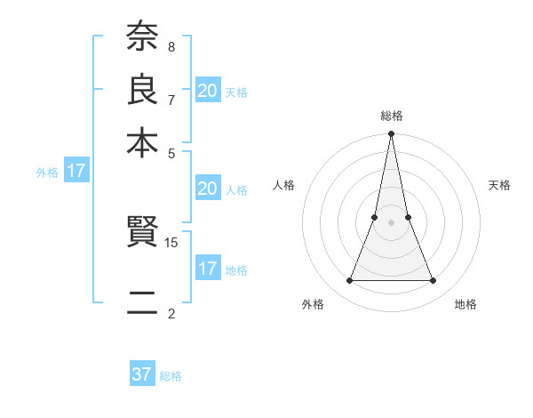 奈良本 賢二さんの総格は37画の5点!