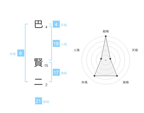 巴 賢二さんの総格は21画の5点!