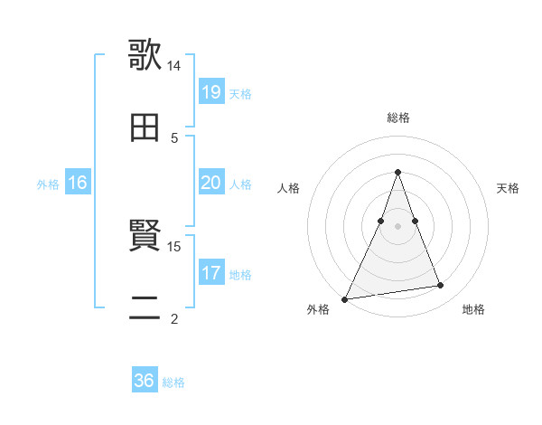歌田 賢二さんの外格は16画の5点!