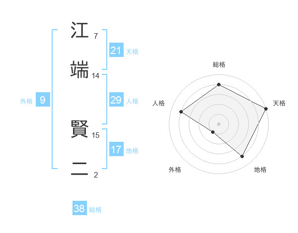 江端 賢二さんの天格は21画の5点!