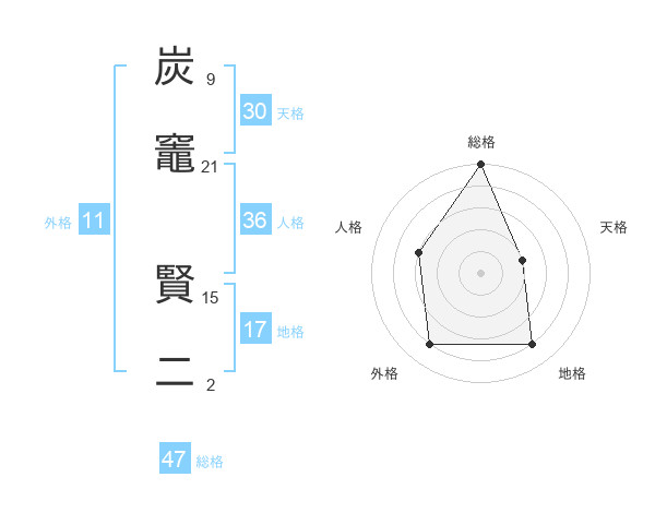 炭竈 賢二さんの総格は47画の5点!