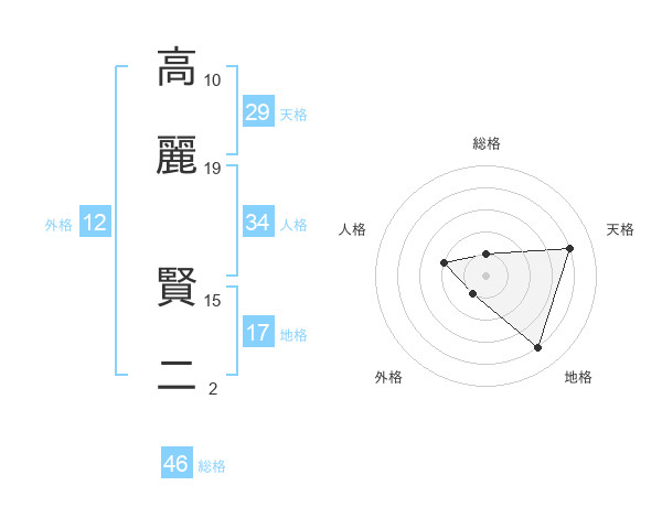 高麗 賢二さんの天格は29画の4点!