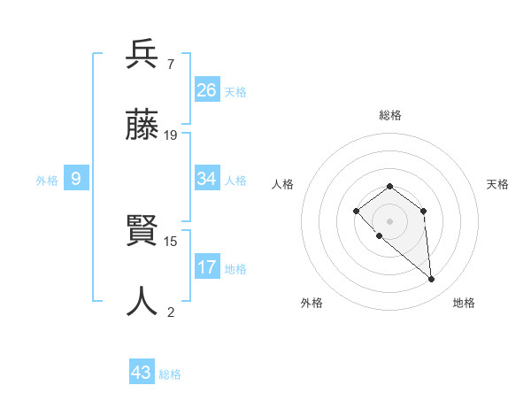 兵藤 賢人さんを姓名の画数から五運を鑑定