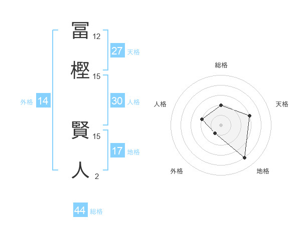 冨樫 賢人さんの総格は44画の2点!
