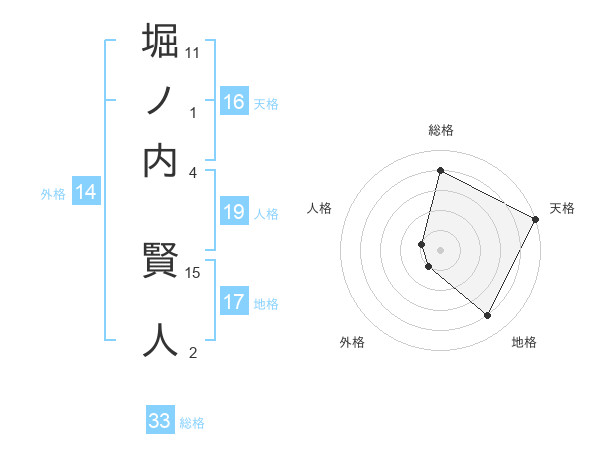 堀ノ内 賢人さんの総格は33画の4点!