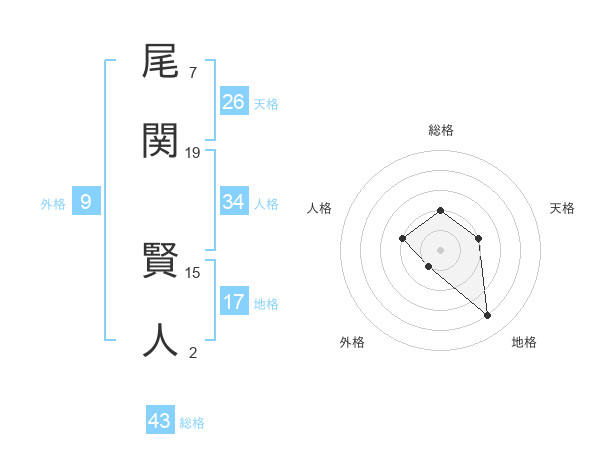 尾関 賢人さんを姓名の画数から五運を鑑定