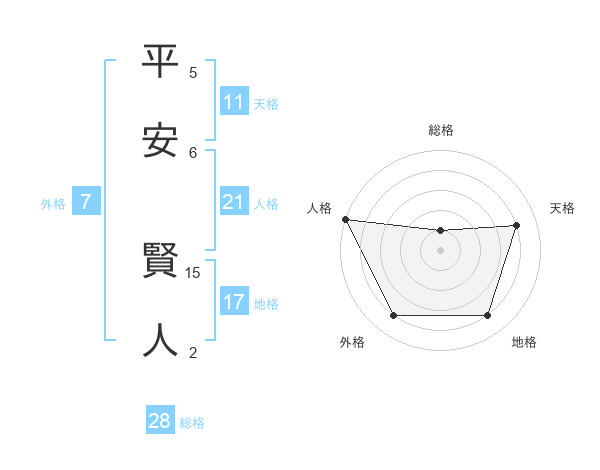 平安 賢人さんの総格は28画の1点!