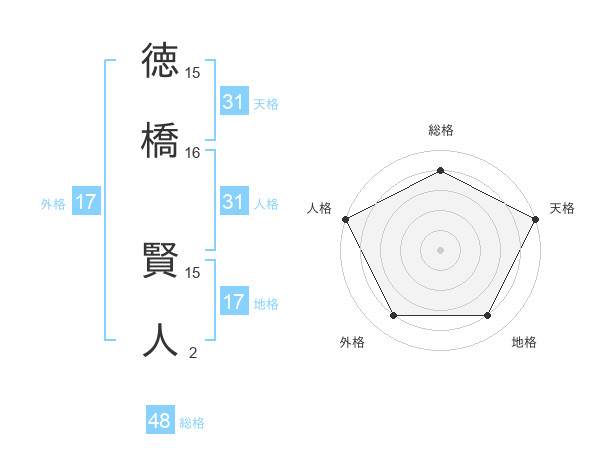 徳橋 賢人さんの天格は31画の5点!