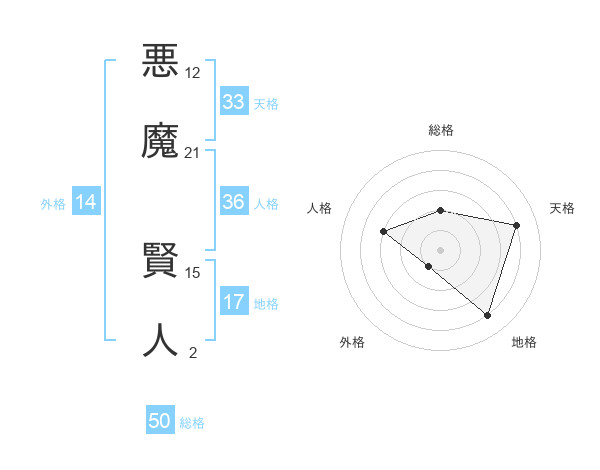 悪魔 賢人さんの総格は50画の2点!
