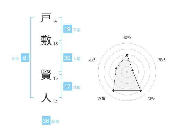戸敷 賢人さんの天格は19画の1点!
