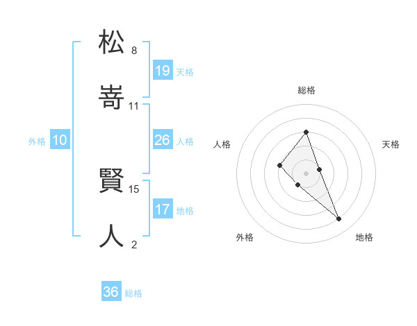 松嵜 賢人さんを姓名の画数から五運を鑑定