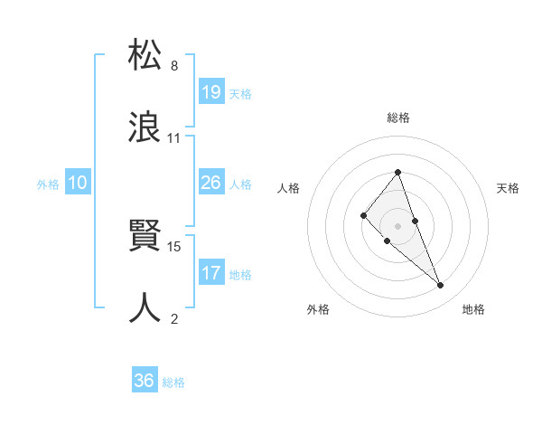 松浪 賢人さんの天格は19画の1点!
