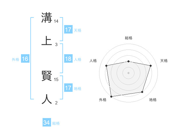 溝上 賢人さんを姓名の画数から五運を鑑定
