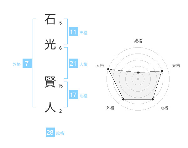石光 賢人さんの天格は11画の4点!