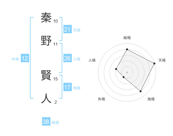 秦野 賢人さんを姓名の画数から五運を鑑定