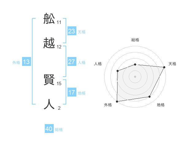 舩越 賢人さんを姓名の画数から五運を鑑定