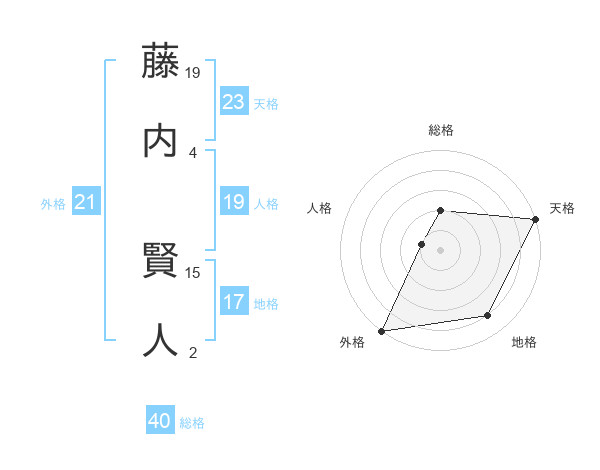 藤内 賢人さんを姓名の画数から五運を鑑定