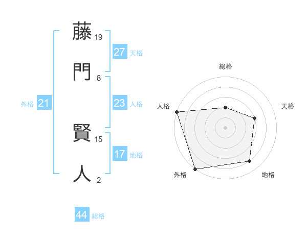 藤門 賢人さんの外格は21画の5点!