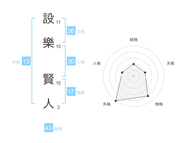 設樂 賢人さんを姓名の画数から五運を鑑定