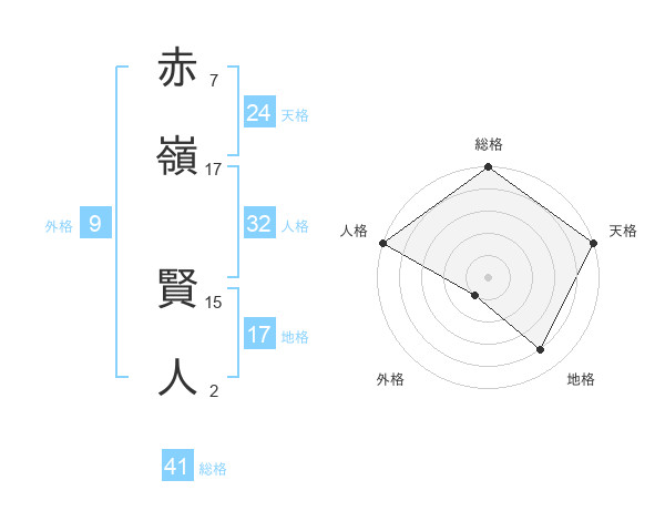 赤嶺 賢人さんの天格は24画の5点!