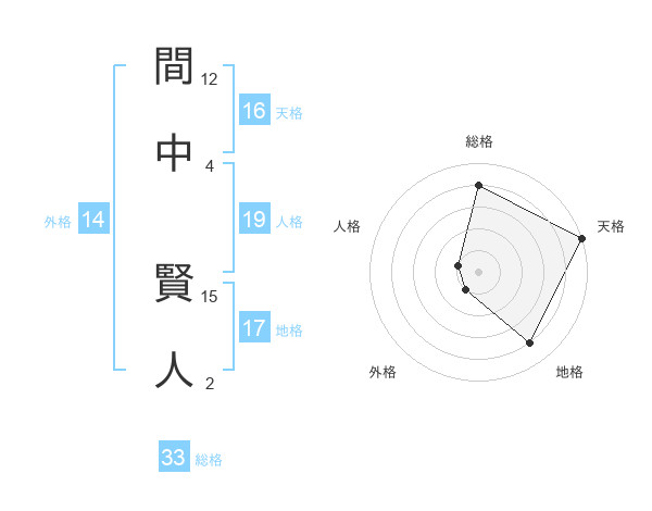 間中 賢人さんの総格は33画の4点!