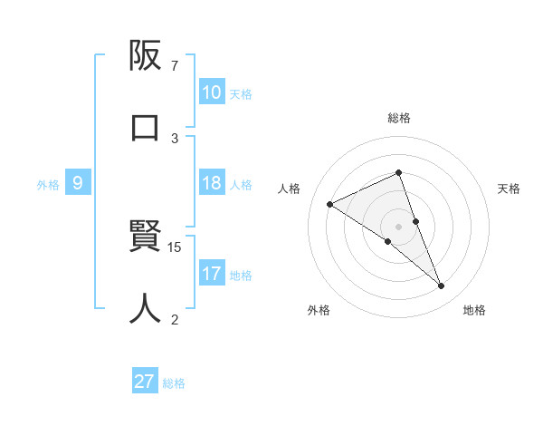 阪口 賢人さんを姓名の画数から五運を鑑定