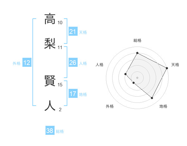 高梨 賢人さんを姓名の画数から五運を鑑定